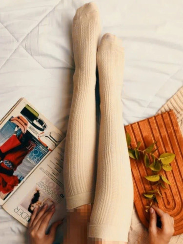 جوراب بلند طرح گندمی پاریز دو رنگ کرمی و سبزیشمی