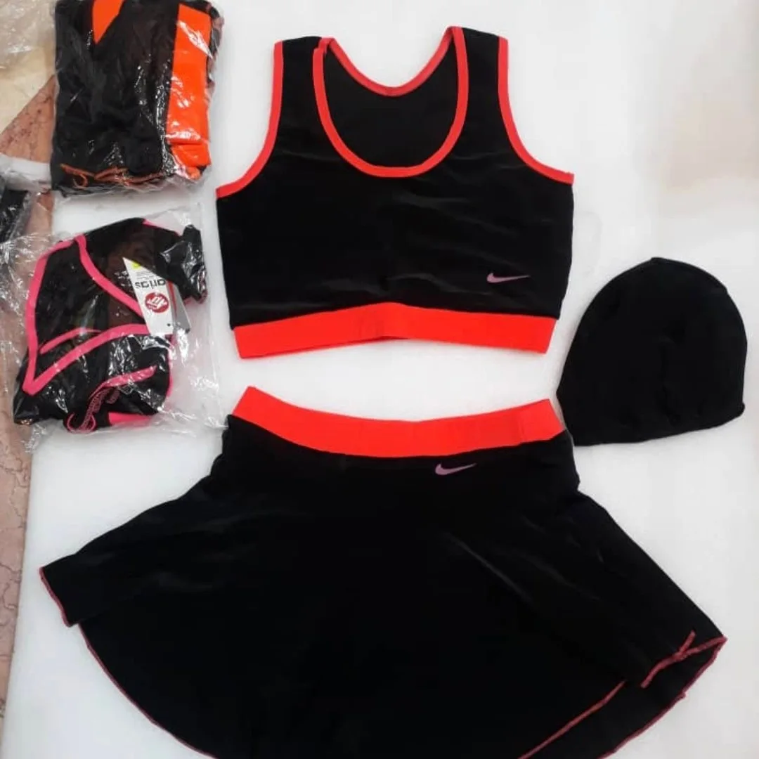 مایو دو تکه دامنی با کلاه فری سایز